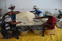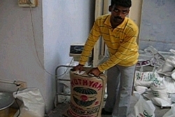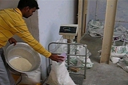 Cleaned Rice is weighed for preparing Rice bags for delivery.